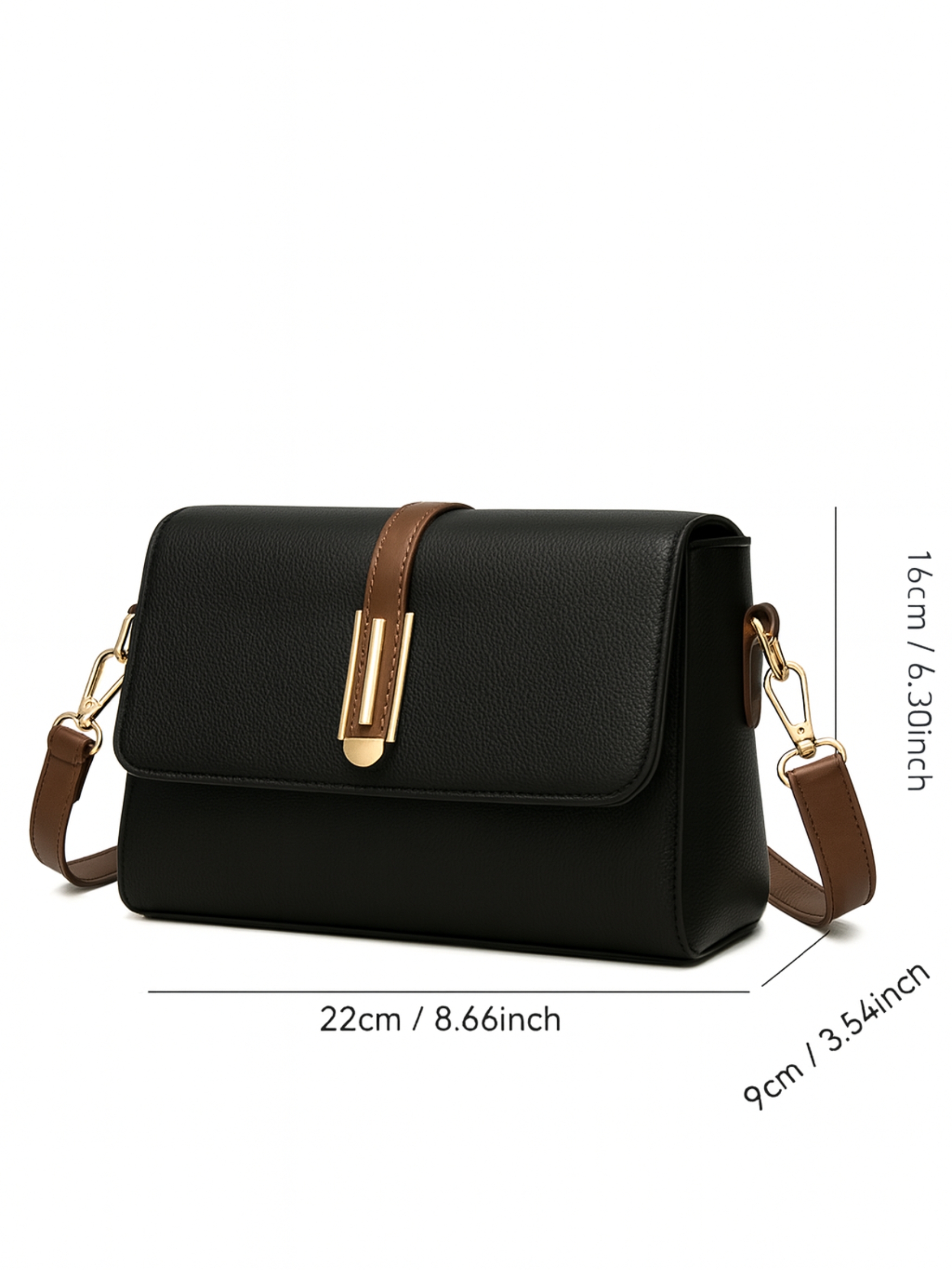 - Secure flap closure with stylish metal detailing